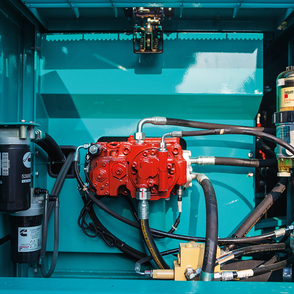 Equipada com motor Cummins QSF3.8 (90 kW), cumpre a norma EU Stage V e garante desempenho consistente em diferentes condições de trabalho.